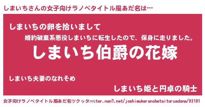 | 男性向けラノベタイトル風あだ名 | 『うちの娘の為ならば、俺はもしかしたらしまいちも倒せるかもしれない。』 |