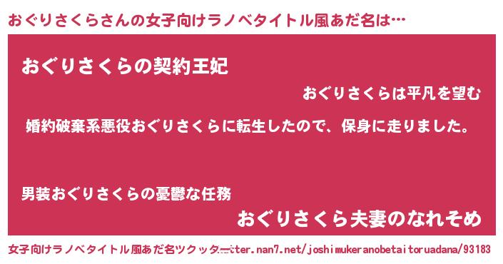 | 男性向けラノベタイトル風あだ名 | 『転生したらおぐりさくらだった件』 |