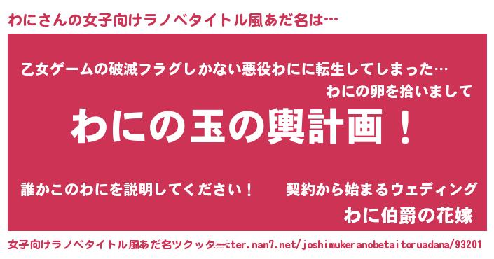 | 意味不明あだ名 | 『ニラ科わに属』『住所不定無職わに(40歳)』 |