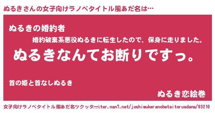 | 男性向けラノベタイトル風あだ名 | 『魔法科高校のぬるき』 |