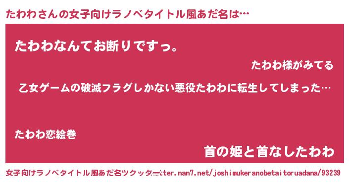 | ヒーロー風カッコイイあだ名 | 『仮面タワダー』『超時空戦士タワワ』 |