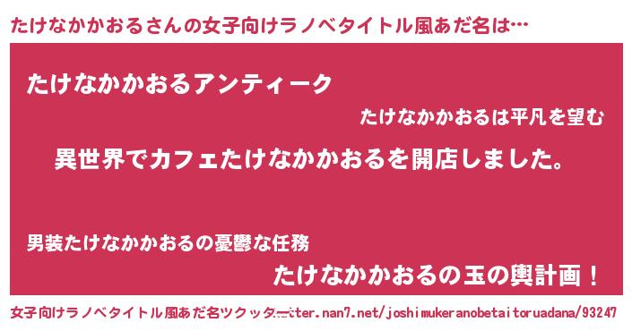 | 男性向けラノベタイトル風あだ名 | 『誰もが恐れるあのたけなかかおるが、ぼくの専属メイドになるようです。』 |