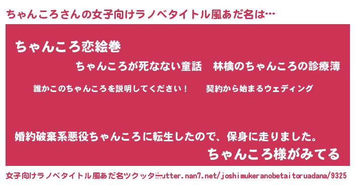 | 男性向けラノベタイトル風あだ名 | 『チャンコロアートオンライン』 |