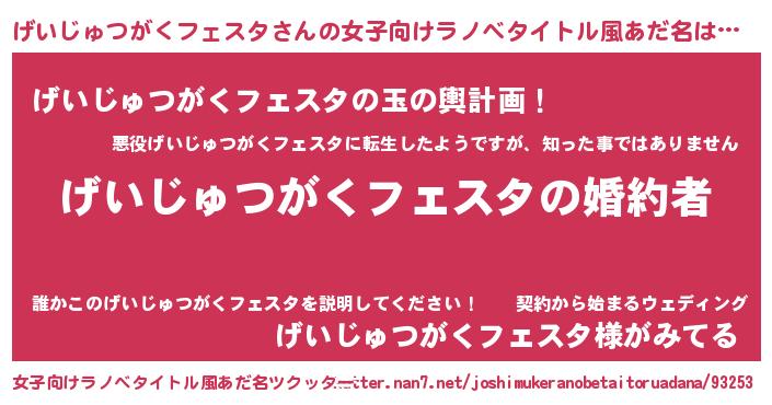 | 意味不明あだ名 | 『げいじゅつがくフェスタフォーエバー』 |