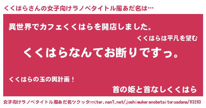 | 肩書あだ名 | 『くくはら閣下』『くくはら先生』 |