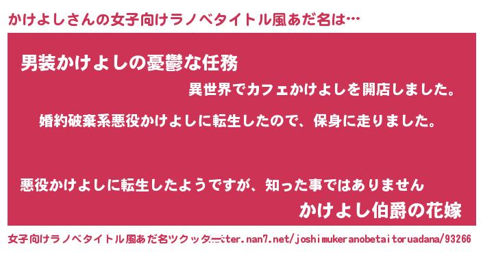 | 男性向けラノベタイトル風あだ名 | 『カケヨシスレイヤー』 |