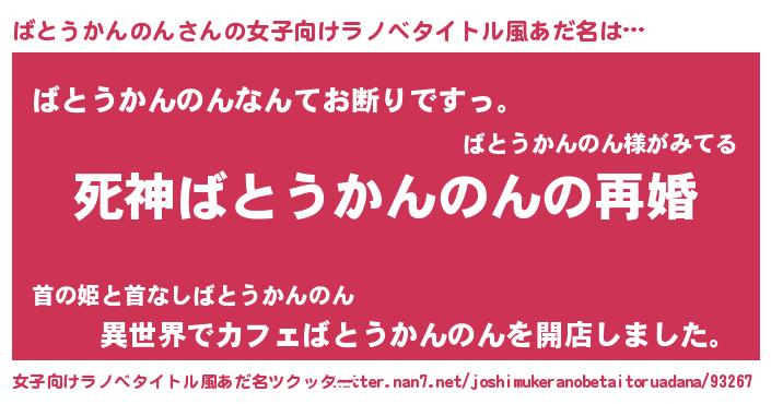 | 男性向けラノベタイトル風あだ名 | 『ノーゲーム・ノーバトウカンノン』 |