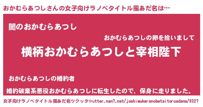 | 男性向けラノベタイトル風あだ名 | 『おかむらあつしに滅ぼされるだけの簡単なお仕事です』 |