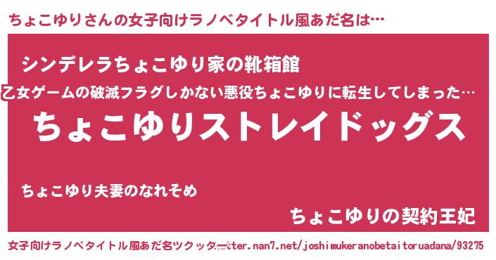 | 男性向けラノベタイトル風あだ名 | 『Re:ちょこゆりから始める異世界生活』 |