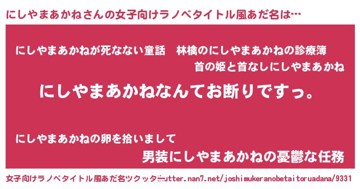 | 意味不明あだ名 | 『自称にしやまあかね』 |