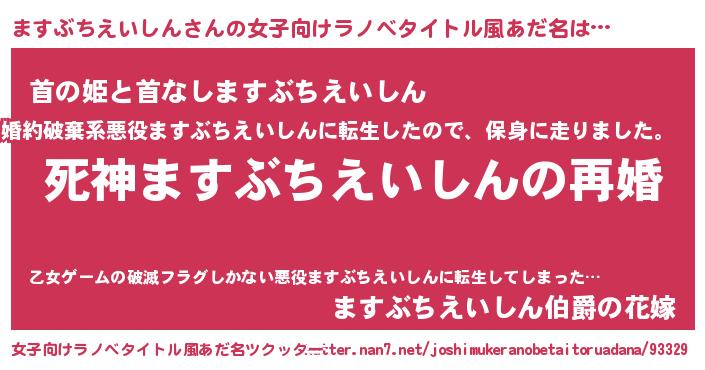 | 男性向けラノベタイトル風あだ名 | 『ノーゲーム・ノーマスブチエイシン』 |