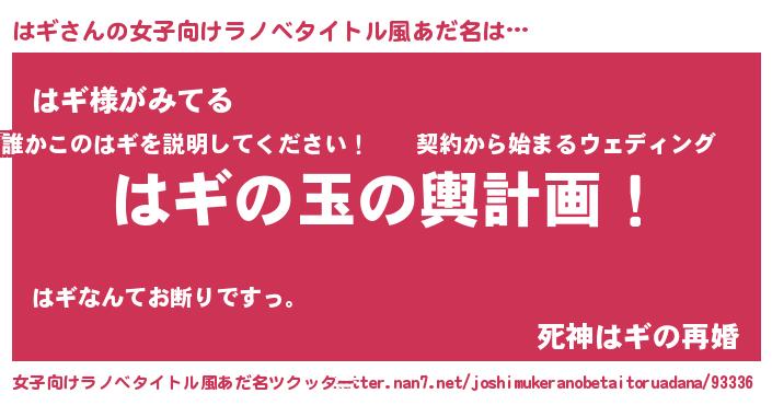 | 男性向けラノベタイトル風あだ名 | 『はギ~年齢イコール彼女いない歴の魔法使い~』 |