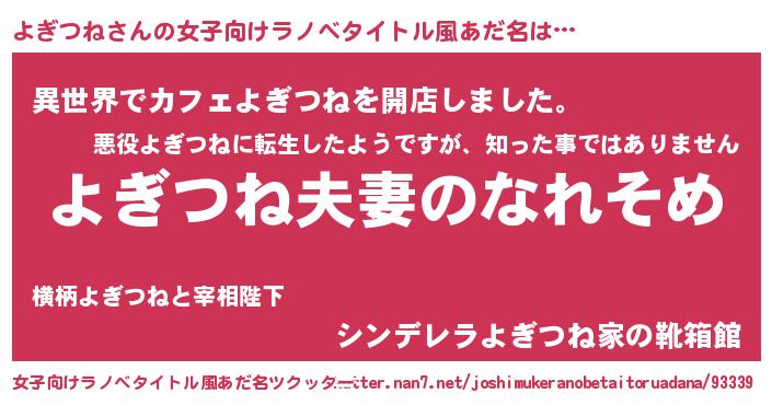 | ヘコむあだ名 | 『よぎつね(小並感)』『よぎっ子』 |
