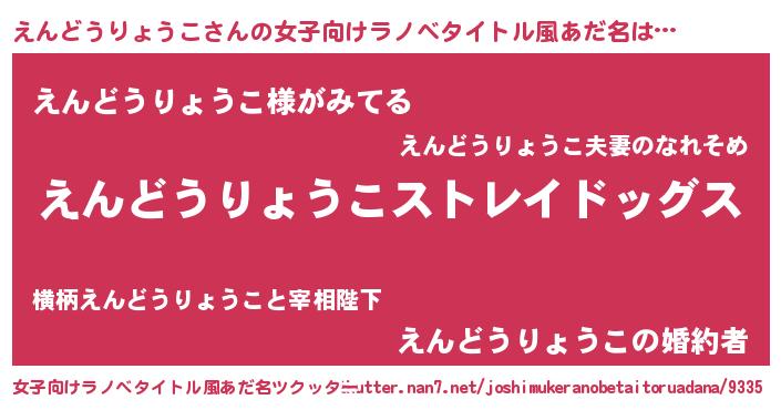 | 男性向けラノベタイトル風あだ名 | 『Re:えんどうりょうこから始める異世界生活』 |