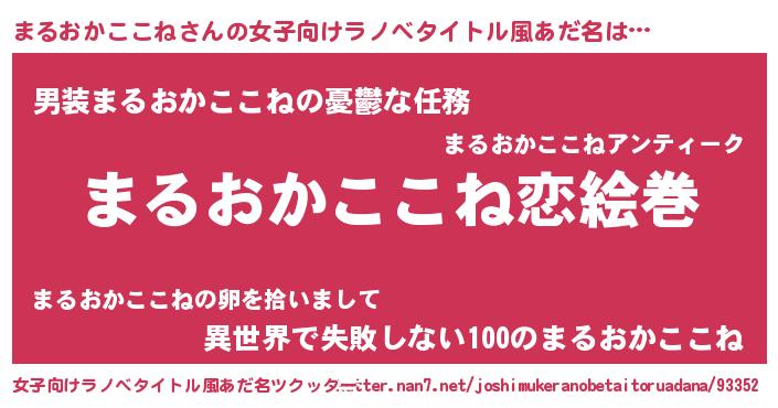 | 男性向けラノベタイトル風あだ名 | 『おまえをオタクにしてやるから、俺をまるおかここねにしてくれ! 』 |