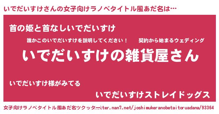 | 男性向けラノベタイトル風あだ名 | 『やはりいでだいすけの青春ラブコメはまちがっている 』 |