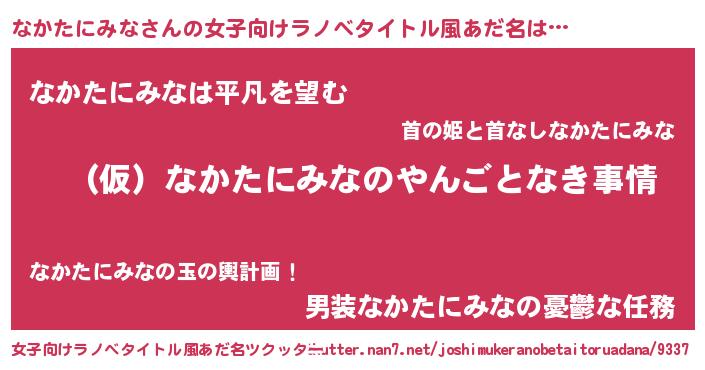 | 男性向けラノベタイトル風あだ名 | 『なかたにみなの憂鬱』 |