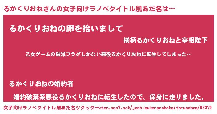 | 胡散臭い通販商品みたいなあだ名 | 『世界中を虜にした世界で10本だけ現存している希少なブランデー…その名も「るかくりおね」』 |