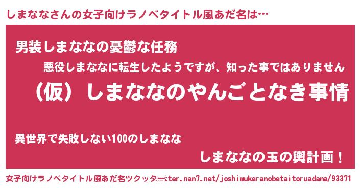 | 伝説のあだ名 | 『伝説のスナイパーしまなな』 |