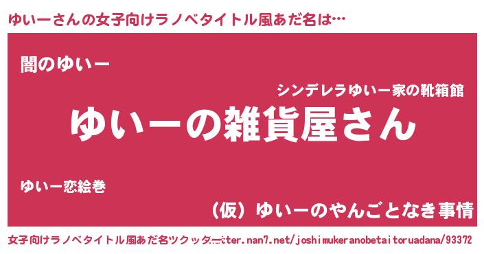| 男性向けラノベタイトル風あだ名 | 『やはりゆいーの青春ラブコメはまちがっている 』 |