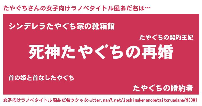 | 男性向けラノベタイトル風あだ名 | 『ノーゲーム・ノータヤグチ』 |