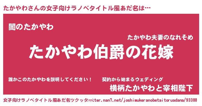 | 男性向けラノベタイトル風あだ名 | 『やはりたかやわの青春ラブコメはまちがっている 』 |