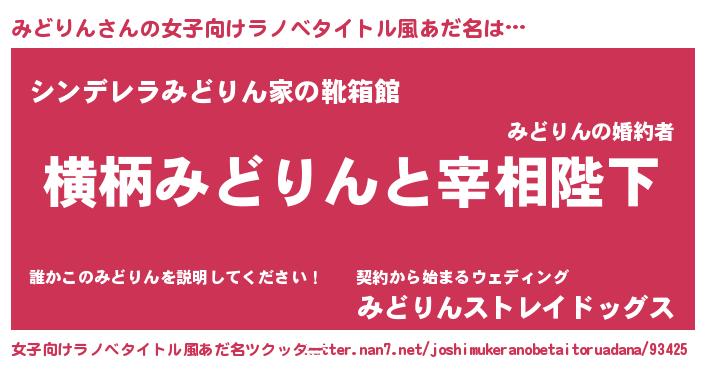 | 男性向けラノベタイトル風あだ名 | 『みどりんに滅ぼされるだけの簡単なお仕事です』 |