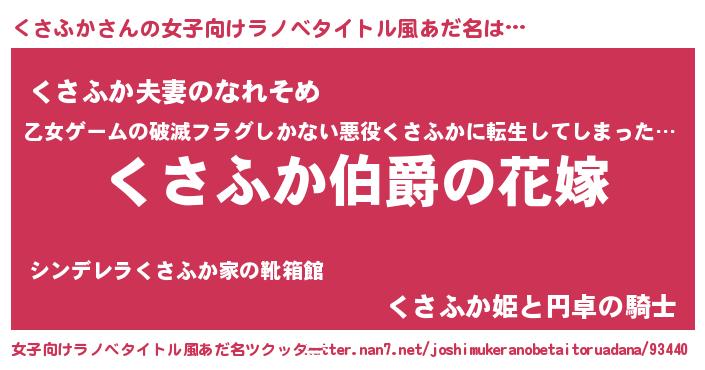 | 男性向けラノベタイトル風あだ名 | 『やはりくさふかの青春ラブコメはまちがっている 』 |