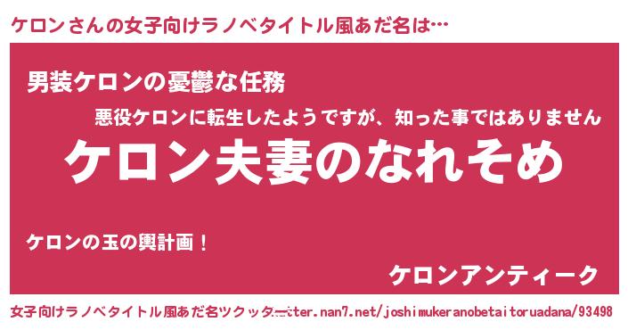 | 男性向けラノベタイトル風あだ名 | 『おまえをオタクにしてやるから、俺をケロンにしてくれ! 』 |