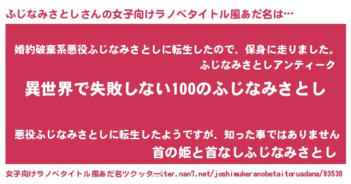 | 男性向けラノベタイトル風あだ名 | 『ふじなみさとしという概念が存在しない退屈な世界 』 |