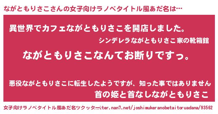 | 男性向けラノベタイトル風あだ名 | 『魔法科高校のながともりさこ』 |
