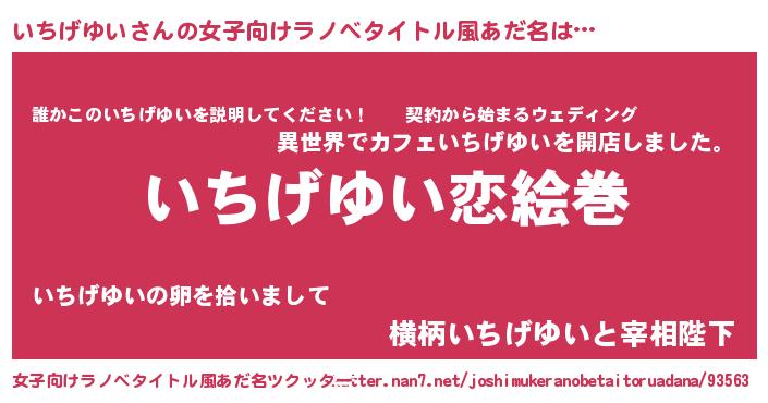 | 男性向けラノベタイトル風あだ名 | 『ノーゲーム・ノーイチゲユイ』 |