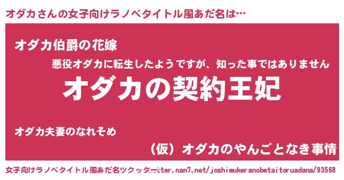 | ファンタジー風あだ名 | 『オダディッシュ』『エターナルオダカー』 |