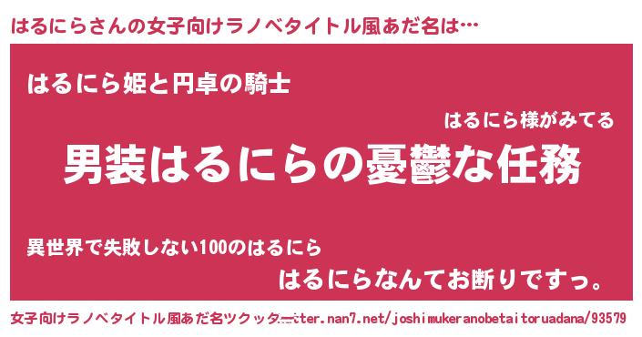 | 男性向けラノベタイトル風あだ名 | 『うちのはるにらが世界を掌握している!』 |
