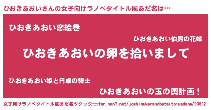 | 男性向けラノベタイトル風あだ名 | 『ひおきあおいの嫁は女の子じゃないと思った?』 |