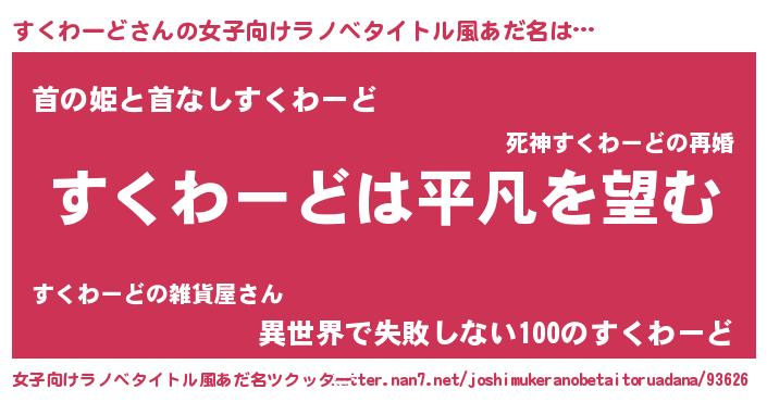 | ヘコむあだ名 | 『すくお』『すくわーど(小並感)』 |