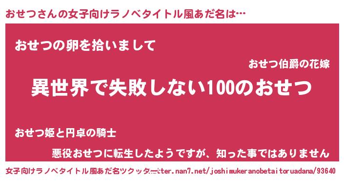 | 胡散臭い通販商品みたいなあだ名 | 『絶対に幸福をもたらす健康食品…その名も「おせつ」』 |