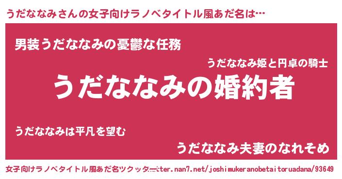 | ファンタジー風あだ名 | 『エターナルウダナナミー』『ウダフェル』 |