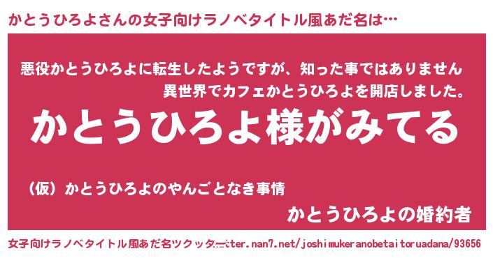 | 男性向けラノベタイトル風あだ名 | 『かとうひろよの嫁は女の子じゃないと思った?』 |