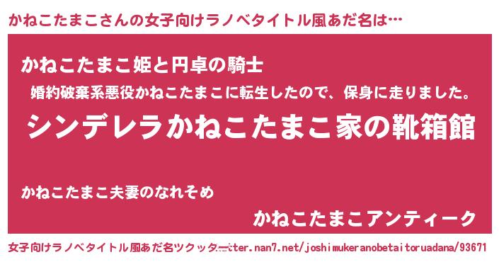 | 胡散臭い通販商品みたいなあだ名 | 『必ず成功する霊験あらたかなお札…その名も「かねこたまこ」』 |
