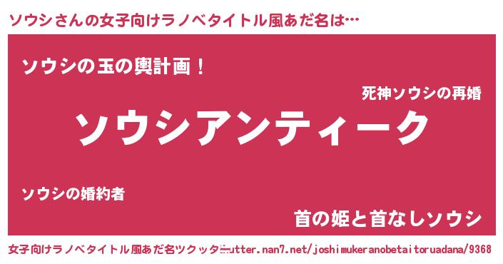 | 意味不明あだ名 | 『自称ソウシ』『ニラ科ソウシ属』 |