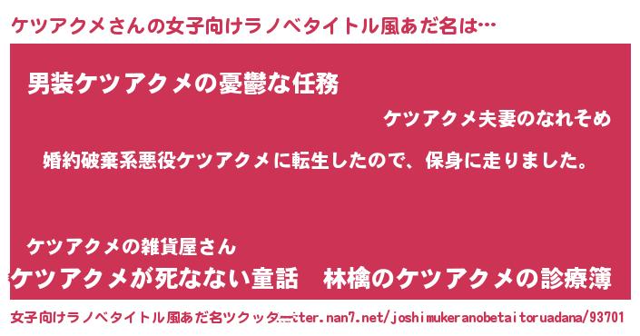 | 男性向けラノベタイトル風あだ名 | 『ケツアクメスレイヤー』 |
