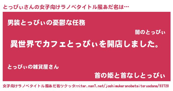 意味不明あだ名 | 『永久保存とっぴぃ』『自称とっぴぃ』 |