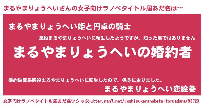 | 男性向けラノベタイトル風あだ名 | 『うちの娘の為ならば、俺はもしかしたらまるやまりょうへいも倒せるかもしれない。』 |