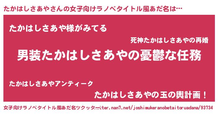 | 男性向けラノベタイトル風あだ名 | 『うちのたかはしさあやが世界を掌握している!』 |