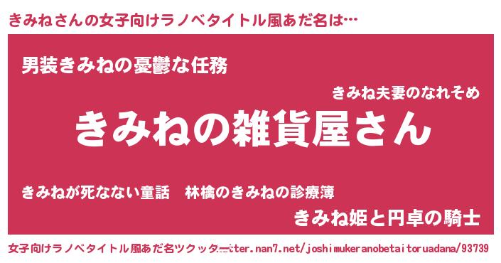 | 男性向けラノベタイトル風あだ名 | 『やはりきみねの青春ラブコメはまちがっている 』 |