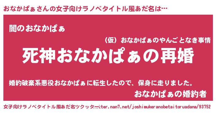 | 男性向けラノベタイトル風あだ名 | 『ノーゲーム・ノーオナカパァ』 |