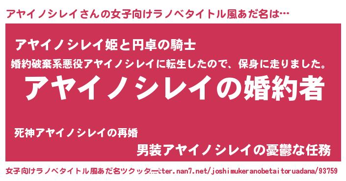 | 胡散臭い通販商品みたいなあだ名 | 『運命の人と巡り会える高級そうな絵画…その名も「アヤイノシレイ」』 |