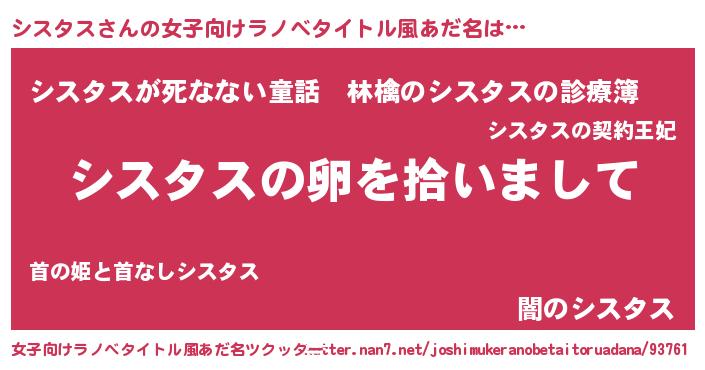 | 男性向けラノベタイトル風あだ名 | 『シスタスの嫁は女の子じゃないと思った?』 |