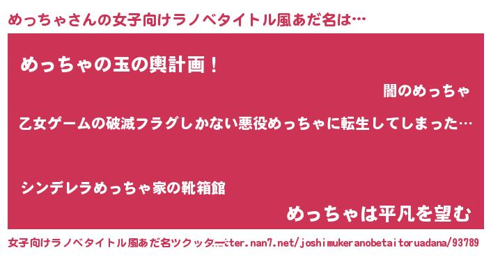 | 男性向けラノベタイトル風あだ名 | 『この素晴らしい世界にめっちゃを!』 |